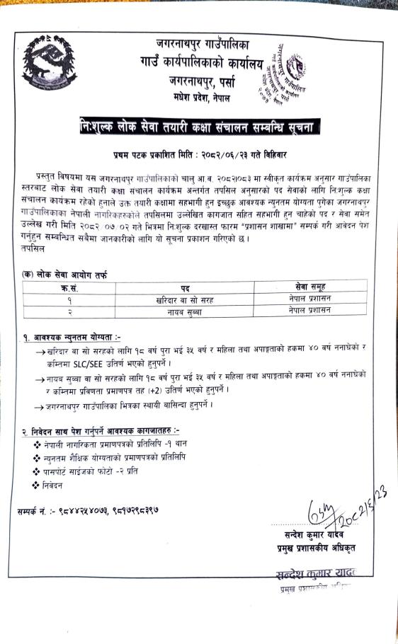 जगरनाथपुर स्वयंसेवक शिक्षकको दोस्रो पटक सूचना