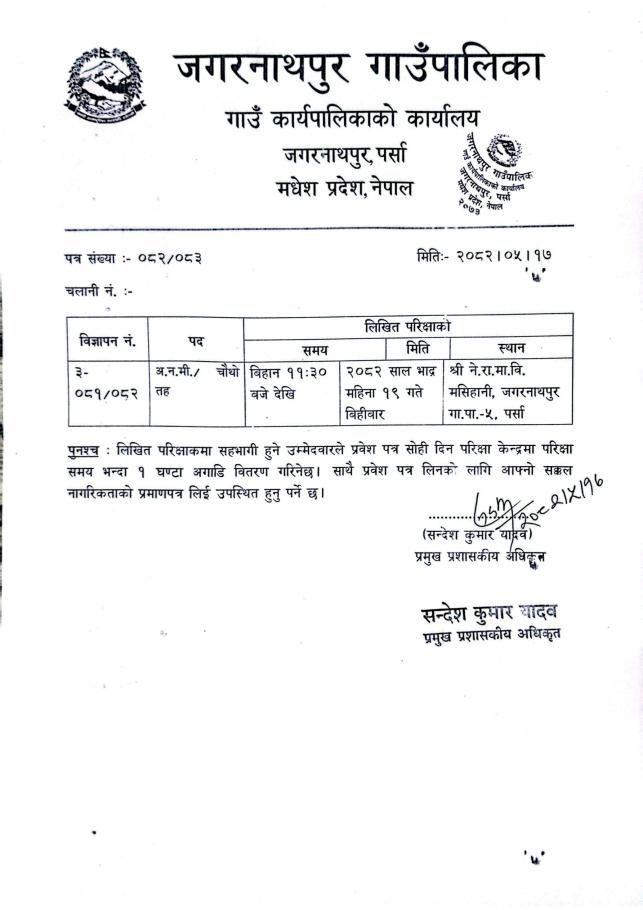 जगरनाथपुर स्वयंसेवक शिक्षकको दोस्रो पटक सूचना