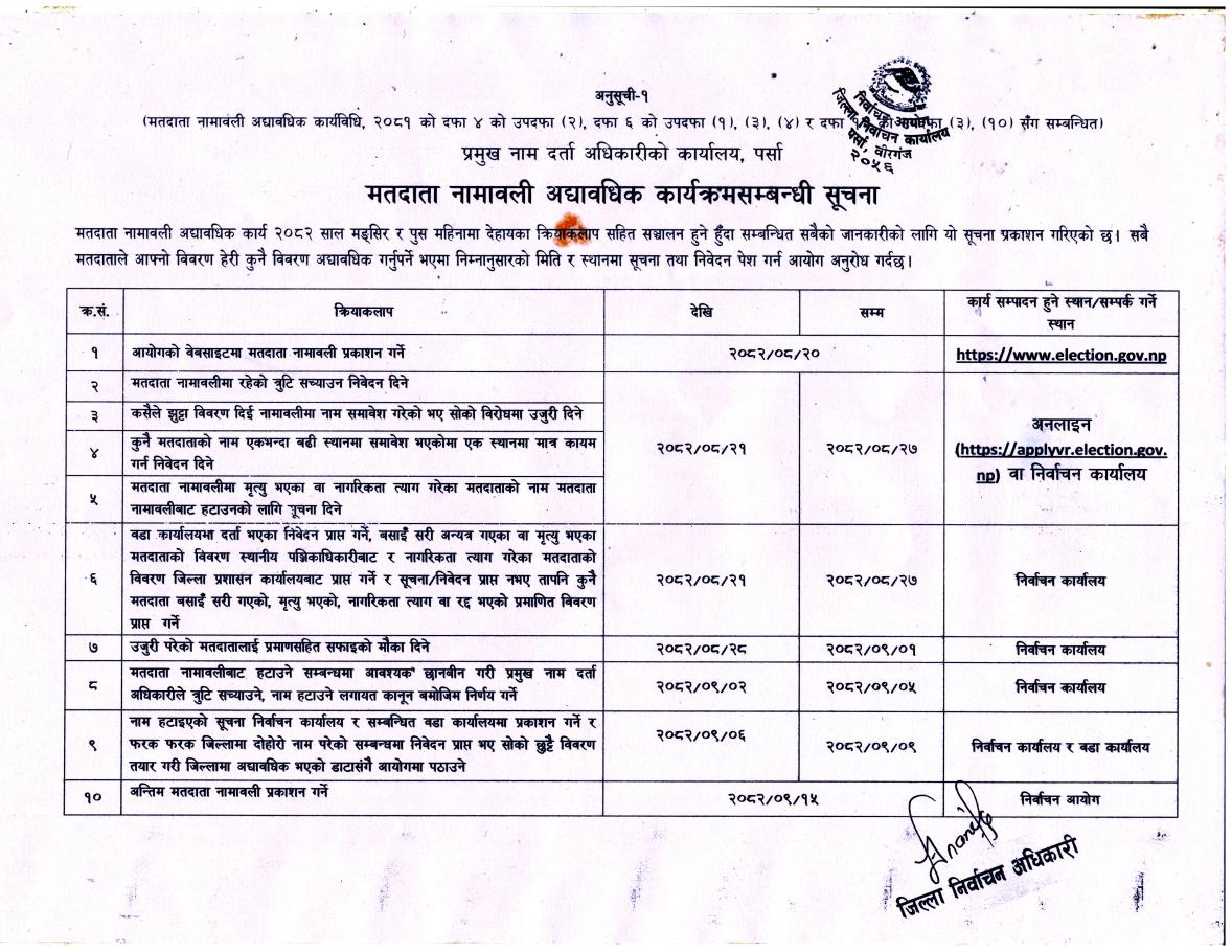 मतदाता नामावली अद्यावधिक कार्यक्रम (दाबी बिरोध ) कार्यक्रम २०८२ सम्बन्धि सुचना