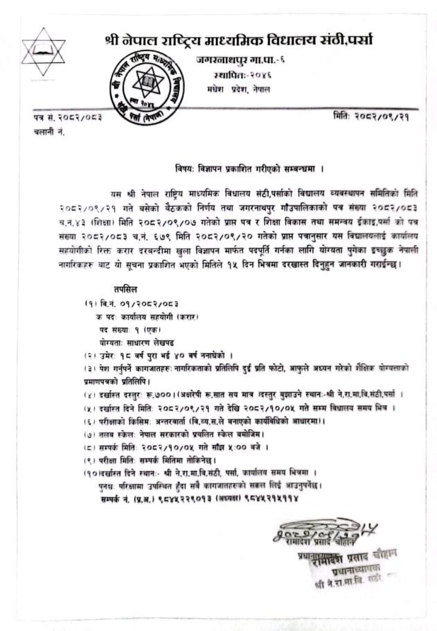 विज्ञापन प्रकाशित गरीएको सम्बन्धमा